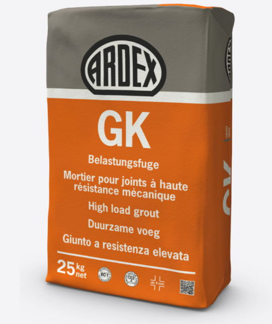 Als het op hard aankomt is ARDEX GK de juiste keus. De voeg is ontworpen voor hoge mechanische belastingen en heeft een hoge slijtvastheid en houdt bijvoorbeeld moeiteloos stand bij het reinigen met een hogedrukreiniger. Maar ook belastingen zoals deze door strooizout, minerale olie en gangbare reinigingsmiddelen kunnen ontstaan, vormen geen probleem voor ARDEX GK. Omdat ARDEX GK vanaf 4 mm voegbreedte praktisch zonder beperking van de breedte kan worden toegepast, is deze voegmortel optimaal geschikt voor het voegen van tegels in werkplaatsen, wasstraten, zwembaden, drinkwaterbassins, werkvloeren, trappenhuizen, galerijen, balkons en terrassen. ARDEX GK voldoet aan de eisen CG2 A conform EN 13888 en is zeer emissiearm – EC 1 R PLUS – conform GEV EMICODE.
