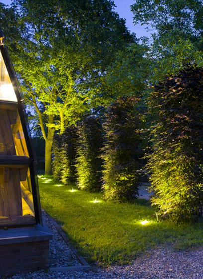 Grondspot LUNA Black is met zijn schuine lichtbundel uitermate geschikt om tuinelementen zoals schuttingen, hagen, muren en leibomen uit te lichten.